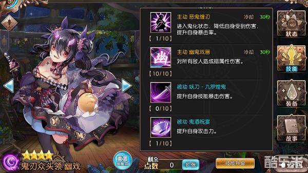 英雄名称:鬼刃众头领 幽戏(四星角色)