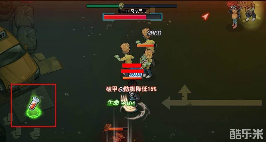 把一大波僵尸击退以后,我们准备迎接BOSS之际,我们会留意到有一个回复药剂,这个药剂玩家触碰使用以后,一定时间又会在同一个点刷新,只要使用及时,效果还是相当好的。