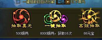聚元需要大量的银量,银两在游戏中是稀缺东西,要用到的地方太多了。那么如何用有限的银两获得更多的真晶呢?首先,你要弄一个vip5,vip5里面有一个性价比很高的东西:聚元额外获得一个真元。也就是说,你用同样的银子,能弄出两倍的真气真晶。这其中的优势之大,相信大家都明白。