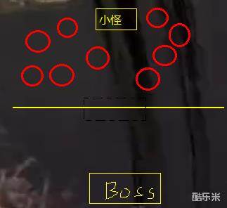 主T面向boss站7m半左右的位置,第二个人面向boss站15m第三个人面向小怪站7m半(据说相当极限- -容易失误,还是4个人比较稳)