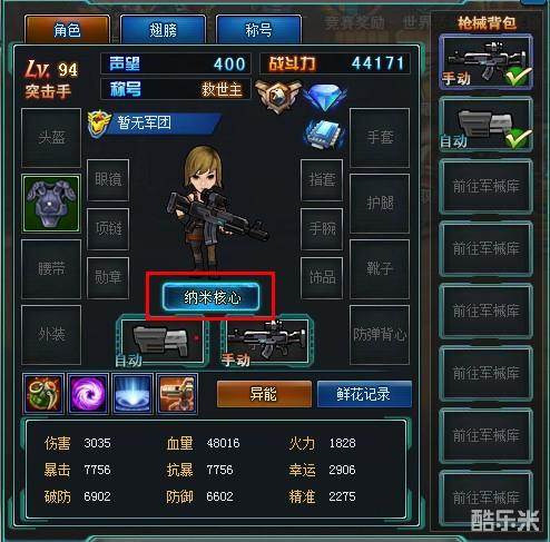 4、纳米核心的属性分为4种:装备属性、激活属性、槽强化属性、套装属性