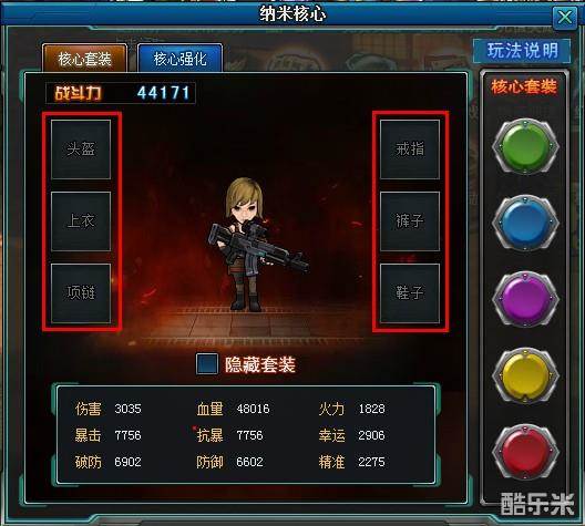 3、玩家可装备核心套装来增加属性,提升战斗力