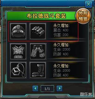 5、装备属性:每一套套装的每个部位都有自己的属性、