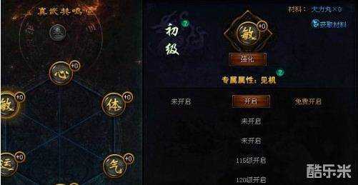 经脉边上有一个真武系统,进去后分心、体、气、技、运、敏等六个部分,其中每一部分分六个孔(跟灵珠差不多),每一个孔开启都有等级要求,其中敏要求最高,最后两个孔需要115级和120级(如果要开,需花费元宝150和200),其他的基本上在110级左右。