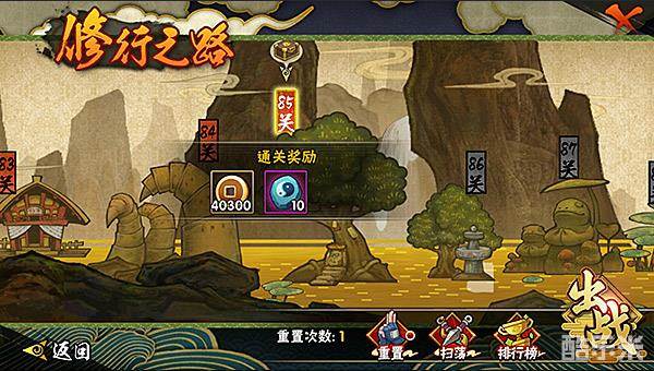 修行之路:根据战力尽力而为,能打多少关是多少关.但每天必须得重置关卡,然后进行扫荡,日积月累的奖励回报。