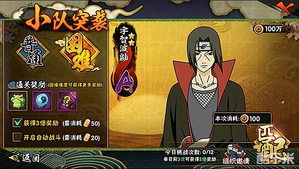 小队突袭:每天突袭的前3次是双倍,所以必须要打。另外消耗50金币可额外获得3倍的奖励,在声望、忍玉、秘卷碎片上都是有着高额的回报。而秘卷在提升战力方面也是有着很大的帮助。