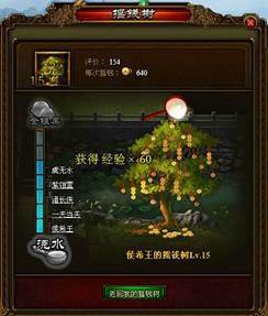 同时,玩家也可以通过山庄内的摇钱树系统与好友互相浇水,不仅在为好友浇水的同时可以获得可观的经验(每日可浇水20次,经验随着人物等级提升而增加),而且在你的摇钱树成熟后可以获得稀有的金银果(使用后可以获得20精力、铜币、经验、装备图纸和制作材料)建议:每日完成各项任务后进行浇水