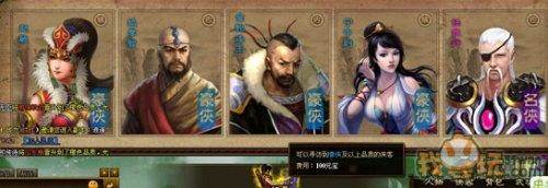 2、豪侠寻访:VIP1以上使用,每次消耗100元宝,可以获得豪侠及以上品质侠客。