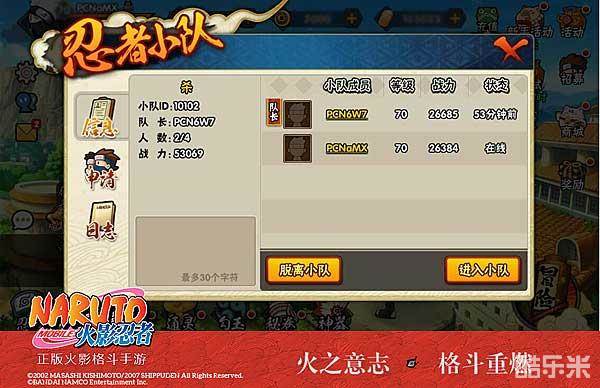 忍者小队最多可容纳4人,当队伍人数满时,将不再接受其他玩家的入队申请。当然,身在忍者小队中的玩家也脱离小队,重寻新的小队加入。
