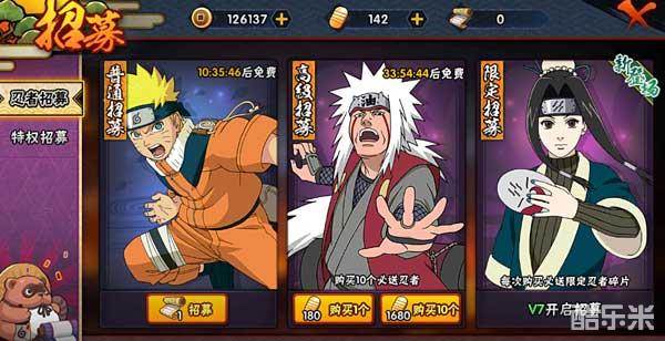 进行高级招募1次可以获得10点活跃度,高级招募需要金币进行,每48小时可以免费招募一次,可以获得道具和忍者碎片等等,有实力的小伙伴每天也可以招募一下,赌一下手气,可能会有意外收获。
