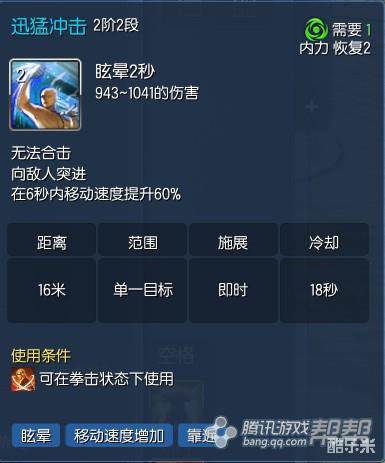 Z键内功集中:可以直接增加5段内力从而触发V键的高伤害技能。