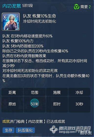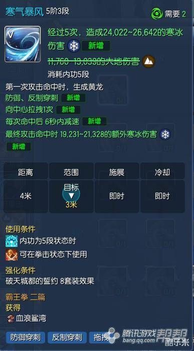 能量冲击点出3阶1段,增加一段内力,同时降低内功集中的三秒CD(请注意,有5段内力的气宗和1-4段内力的气宗是不一样的)。