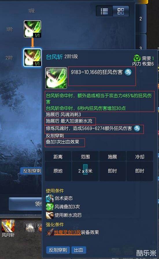 爆发阶段:回天令(最好身上存有3个风魂)→天空斩(天空斩未冷却时用落剑式)→台风斩→断水流→台风斩→断水流(右键和F键卡刀到回天令效果消失,能卡几组视当前网络延迟决定)