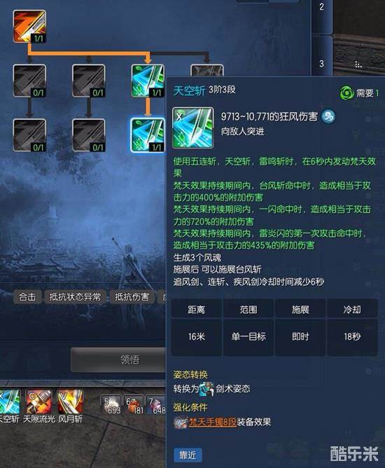 推荐理由:连斩本来就是很常用的技能,既能减少回天令的冷却时间,还可以通过天空斩来减少自身的冷却时间。获得清月效果后断水流暴击立马就可以打出一个台风斩增加很多输出。