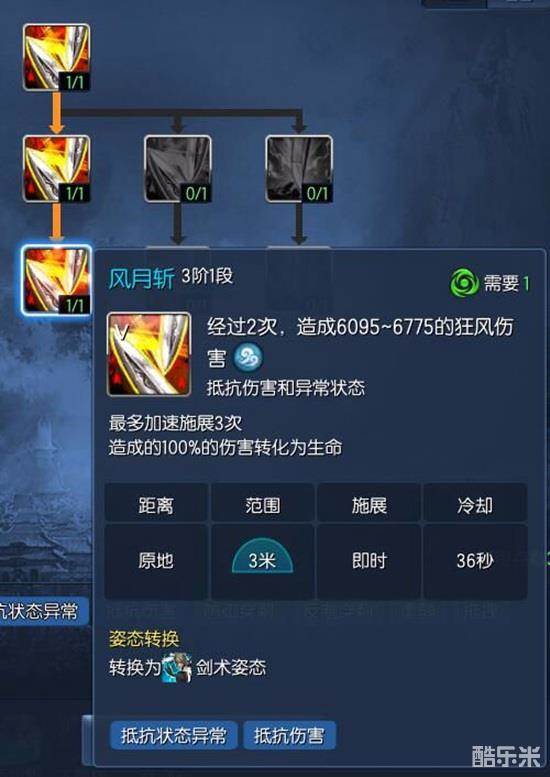 推荐理由:可施展3次施展时是无敌状态且造成伤害100%转化为生命是一个很不错是无敌回血技能,很好的提高了战斗时的生存能力。也可以根据实际情况选择3阶2段一键范围双虚弱清理小怪很好用,但会损失生存能力。