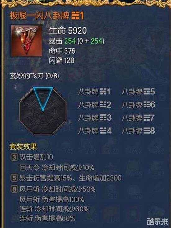 推荐理由:获取方式比较困难,有条件的小伙伴最佳的选择,断水流只消耗1的内力,减少天空斩一半的冷却时间,而天空斩是能触发梵天效果的技能。