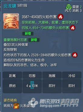 基本8秒一个双龙,手镯BUFF不断,全程提升伤害,想想就爽翻了。加速龙流:需要一定装备支撑(其实也看脸)毁灭灵核不到9段,戒指不到8段,不建议玩加速火龙流,因为内力的需求相当大啊