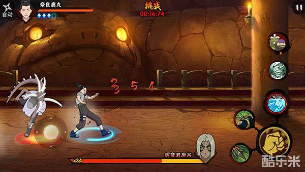 打法:战斗中,除了君麻吕之外还会有两名音忍忍者进行战斗。开战后,君麻吕会释放出技能鬼百合,此时一定要注意不能向前方移动,待技能释放完毕后君麻吕落地时,可立即发起攻击,同时可快速击杀掉两名音忍。君麻吕的铁线花技能释放距离远,可将目标拉至自身前方进行攻击,配上和君麻吕的普攻还是能造成大量的伤害,所以在对抗中避免与君麻吕处在同一直线。另外,君麻吕的大招也是需要注意的,大招会随机释放,速度快、伤害高,但被命中的同时有一定几率倒地,这就完全是看运气了。
