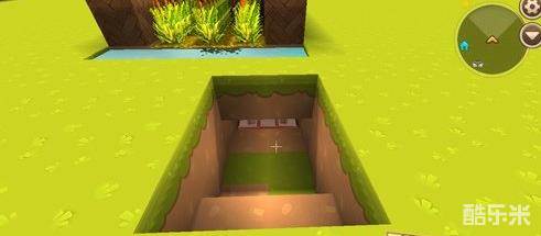 9、用草块填上地表,如图所示,我们能从这块区域操作储物箱啦!