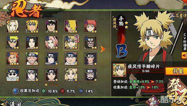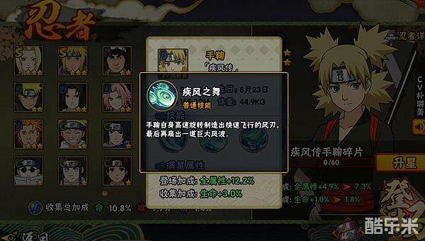 1.提升技能命中率:作为一个主要靠技能来打伤害的忍者,提升手鞠【疾风传】的技能命中率相当于提升了她的伤害;