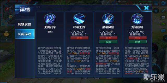 技能解析:能量可以极大地增幅狂铁的技能,在进入战斗前,我们可以通过平A野怪和小兵获得能量,然后在团战时打出高额输出。
