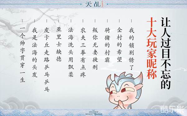在三界行走,怎能没有一个如雷贯耳的名号?但这些玩家,名号不止响亮,甚至有点秀!例如:最实诚名号“小号1”、“小号2”,最认真读书名号“二十年义务教育”等。最后,为各仙君奉上最让人难忘的十大玩家昵称!