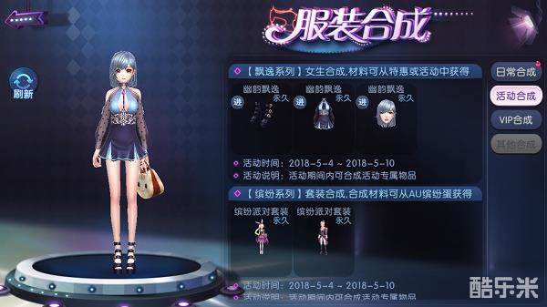 再来看看飘逸系列女装,跟男装一样主要采用蓝色黑色作为基调,网纱露肩袖子符合了漂逸的主题,性感中带点可爱!搭配下身开叉裙,如此装扮在心仪的他面前也绝对吸睛哦~