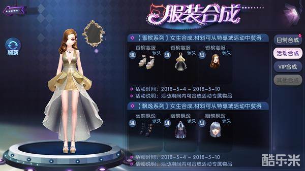 有绅士装了,自然也少不了与之搭配的淑女装。这套香槟系列的女装,主要采用金色为基调,是不是给人一种大气奢华的感觉?大波浪的卷发搭配大波浪的裙摆,胸前的V字领,一股“我最性感”的味道有木有?