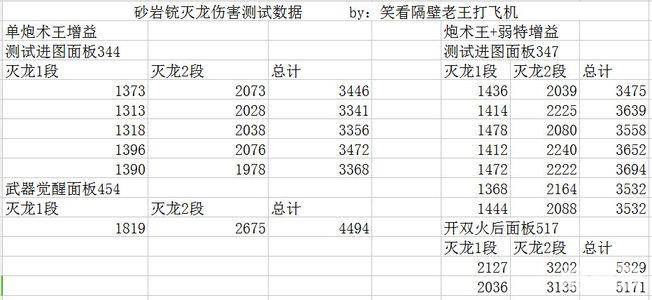 2.对于物理放射铳的灭龙伤害。单炮王增益后,伤害值=物理面板*10,伤害浮动在正负5%之间。在有弱特5%加成后,伤害浮动在正向0~10%之间。