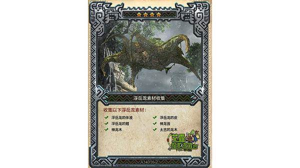 浮岳龙素材有6种,其中神龙木为防具怨念素材,太古的龙木为武器怨念素材,周产出量为3-12个(每盘1-4个)。