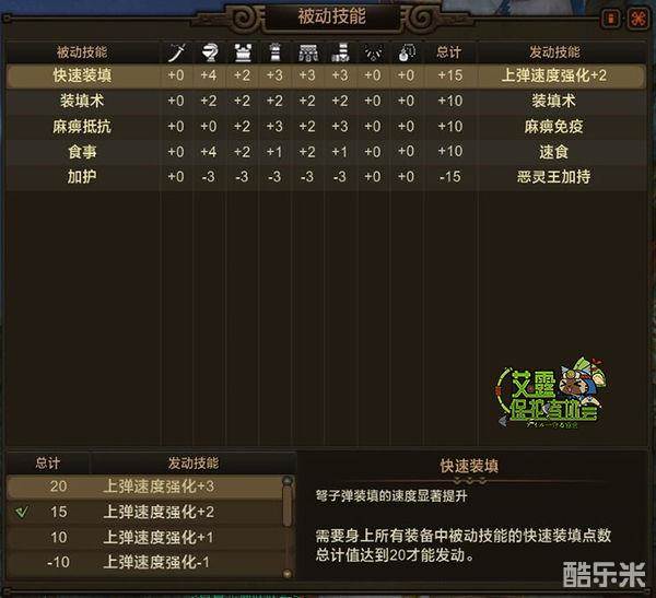 浮岳龙近战防具核心技能是匠和心眼,远程核心为快速装填与装填术,武器为麻属性,继承蝎子派生路线。