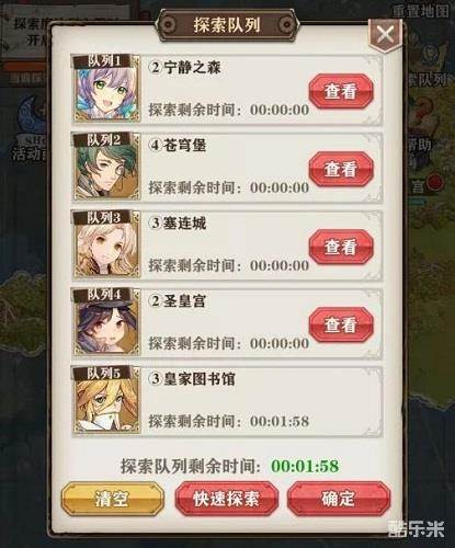 点击清空即可一次性取消所有正在进行的冒险,此时所有放置冒险都会被终止,已经获取的进度不会回退,请慎重使用。使用快速探索,团长大人可以一次性减少队列内事件的探索时间。