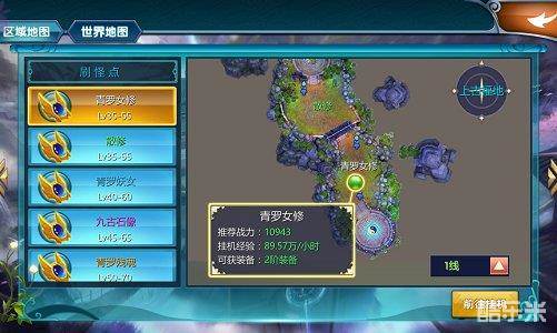 在进入挂机系统后玩家可以通过区域地图查看适合自己的挂机地点,小编现在80多级原则上在80级怪物地点挂机就可以安心升级了。