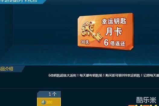 1、幸运钥匙的月卡,基本上也是很多人的首选了,毕竟每天能领取大量幸运钥匙。