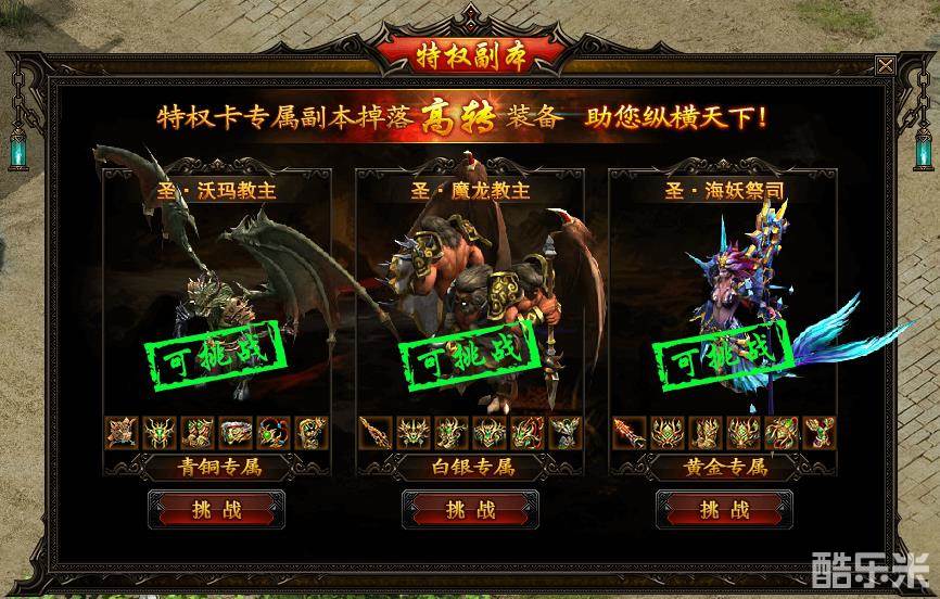 玩家购买特权卡后,可以挑战特权卡专属副本。