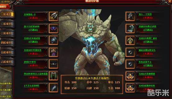 泰坦共有六个阶段,每个阶段对应一个强大的守护者,当玩家将目标全部达成后便可以开启更高级的泰坦,获取更丰厚的奖品。激活全部目标不仅可以获得丰厚的极品道具奖励,当把当前阶段的所有目标达成后,还会获得强大的属性加成,属性加成会永久增加在主角身上,提高您的战斗力。