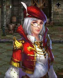 详细介绍:有着瓦尔波特家族特有的银灰色及肩短发,紫色瞳孔透着智慧的光芒。披着起肩的红色学者长袍,白色花边衬衣,黑色短裙。戴着棕红色的贝雷帽,其上还插着一根白色长羽。戴着一副小巧高档的眼镜。手持轻便的可变形长锤,可以作为基本防身武器,也可以用于修理机械装置。