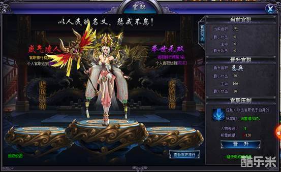 官职除了可以带来属性的提高之外,当高等级官职的玩家攻击低等级官职的玩家时开可额外提高10%的伤害。
