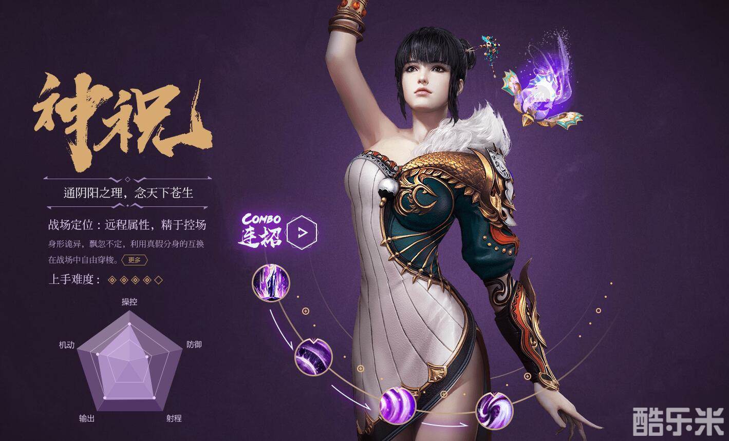 神祝职业定位是法师,拥有较高的爆发和大范围的群攻技能,但是自身比较脆弱;对于玩家的操作手法有一定的要求,玩的好的法师就是个移动坦克,可以把对手风筝到死,耍的团团转。