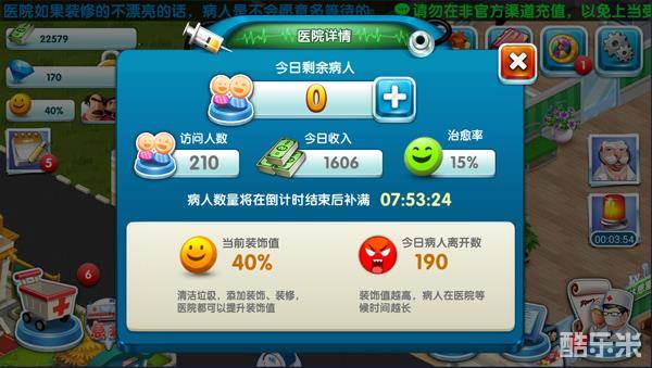 在游戏中每天病人数量都是固定的,如果在线时间长,或者级别高了以后很快就没有病人可以看了,这样一来经济命脉就断了,怎么办呢?