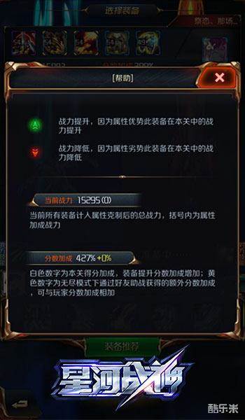 相比较而言,机甲的选择比较单一,每种属性就只有一个机甲代表。但是辅助装备则是集百家了,按照惯性思维来说,在附属装备上优先选择星级、战力高的装备,属性克制会被放在末位作思考。其实这样并不好,属性克制对于《星河战神》的四大模式是必须要考虑的一个因素。首先,闯关模式是最明显不过的,不少玩家都会觉察到如果使用不与BOSS属性相克制的机甲和装备,甚至是用属性被克制的机甲和装备,战斗力明显大大不如敌机。如果换上克制属性的机甲和装备,战斗力直接高于敌方战斗力,胜利更是轻易被拿下。