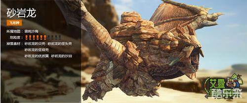 砂岩龙是岩龙的亚种,其基本技能都是继承了岩龙。不过砂岩龙的硬直并不像他的近亲岩龙与晶岩龙那么容易,而且肚子更难破坏,攻击招式杀伤能力极强,围殴肚子并不会那么安全了。