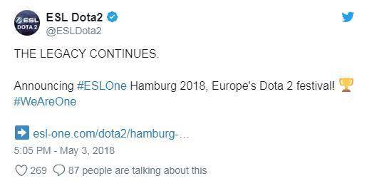 DOTA2 ESL One汉堡2018宣布 可能成为MAJOR赛事