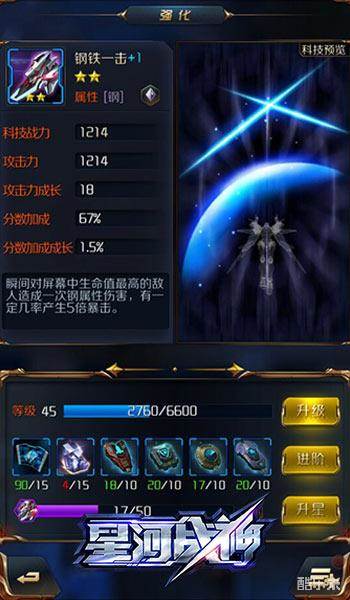 钢铁一击的杀伤力就如同它的名字一样划破苍穹,能够对屏幕中生命最高的敌人造成一次钢属性的伤害,甚至有可能一定几率产生5倍暴击。在对战BOSS时使用,运气好的话可以通过这个科技直接秒杀BOSS。同闪电轰爆一样,它也是一星装备,故而在获取过程中也是相当轻松。除此之外,只要善加积累,钢铁一击能够在最短的时间内升星成二级,战力也会大幅度得到提高。
