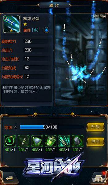 接下来是和暴风空气炮同为一星级的装备寒冰导弹,寒冰导弹也具备自动追踪的属性。暴走状态下的机甲发射出的寒冰导弹,虽然飞行速度较慢可是伤害较高。除此之外,在攻击状态下会出现多个导弹锁定同一个残血敌人的情况。这样有助于玩家快速击杀敌机,防止多架敌机同时出现在屏幕发射出密集的子弹干扰我方机甲的飞行。