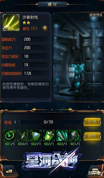 石属性的沙暴射线是向前方目标发射数条射线,攻击方式是呈断续的而不是连续的。随着武器的升级直到机甲进入暴走状态,沙暴射线的数量不但会增加,而且攻击频率也得到加快。高频率的攻击确保了沙暴射线的持续输出能力,即使在敌机数量很多的情况下也能快速消灭敌机。不过沙暴射线属于二星级装备,在获取过程还是存在一些难度。