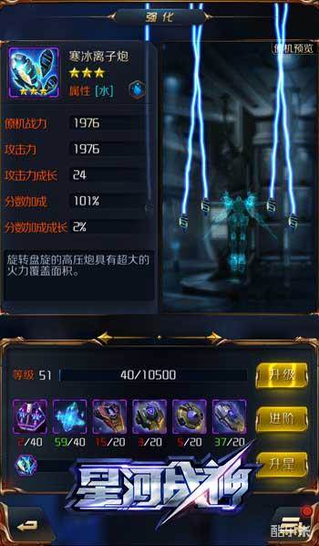 水属性的僚机,本身就是为搭配寒冰刺客的分散攻击量身打造的大范围杀伤武器,但在僚机的使用过程中受到了很多玩家的亲睐,将它和各种机甲搭配在一起,展现出了各种各样的效果。但是由于寒冰离子炮的获得难度也比较大,也是很多人可望而不可及的。综合来说,寒冰离子炮是一个持续输出的利于清怪的僚机,而且能给火属性的敌人造成成倍的伤害。零件会在精英关卡的38关产出,所以说按照零件搜集也比较麻烦,运气好的玩家就在寻宝中试试吧!