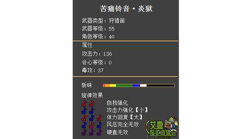 又以钢龙为例,因为这家伙身边总有风,近身会被吹得没法打,所以我们需要一个抗风笛。这里推荐苦痛铃音,因为它能吹抗风压还能回血,同时还是毒武器。(钢龙中毒后不会放黑风)