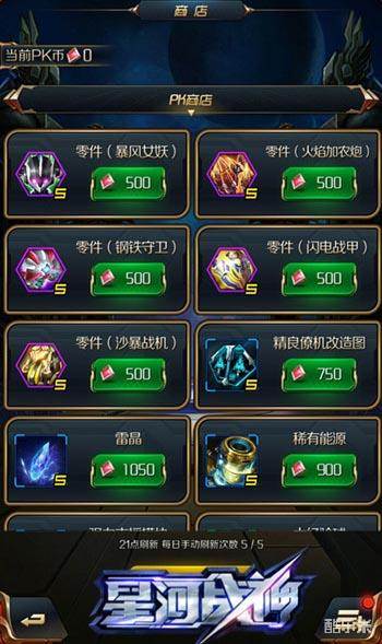 在PK模式中最大的特点就是可以获得PK币,以此来兑换陈列在PK商店中特殊零件、进阶材料以及经验球等。若是你还在为缺少材料烦恼,别忘了带着你的机甲来PK商店瞧瞧。