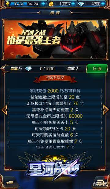 成为V6贵族可以说是升V道路上的一个转折点,也许很多玩家会选择停留在V6,因为V6所需要充值钻石的数量是大部分玩家所能够接受的。而且当大家成为V6贵族的时候,在战力方面已经和平民玩家有了很明显的差别。下面就针对V6贵族的特权为大家制定一个玩转星河的计划。